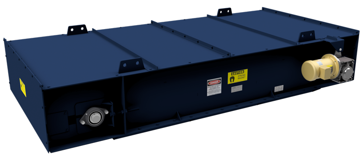 The crossbelt deflector is standard and mounted to the magnet box perpendicular to the conveyor. It is used to prevent conveyed material from getting jammed between the magnet box and the self-cleaning belt.