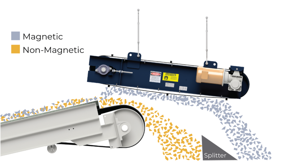 permits the use of a smaller more economic magnet in comparison to cross-belt over the conveyor orientation. Inline Magnets are used in conjunction with a splitter to ensure